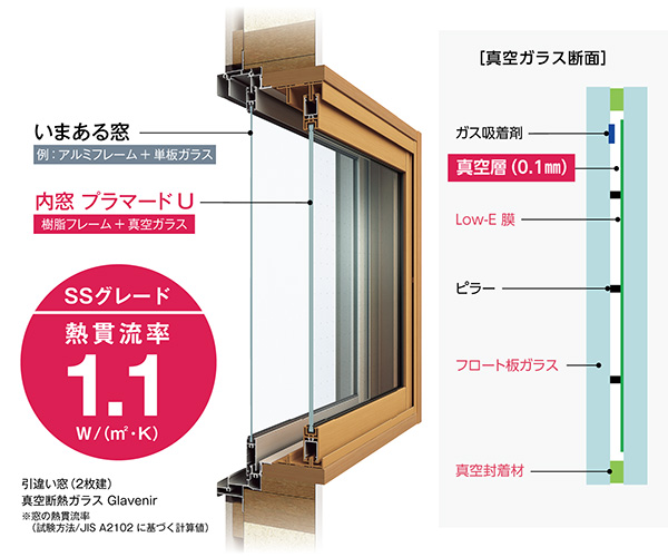 たとえばサッシの素材は、アルミより樹脂の方が断熱性に優れています。