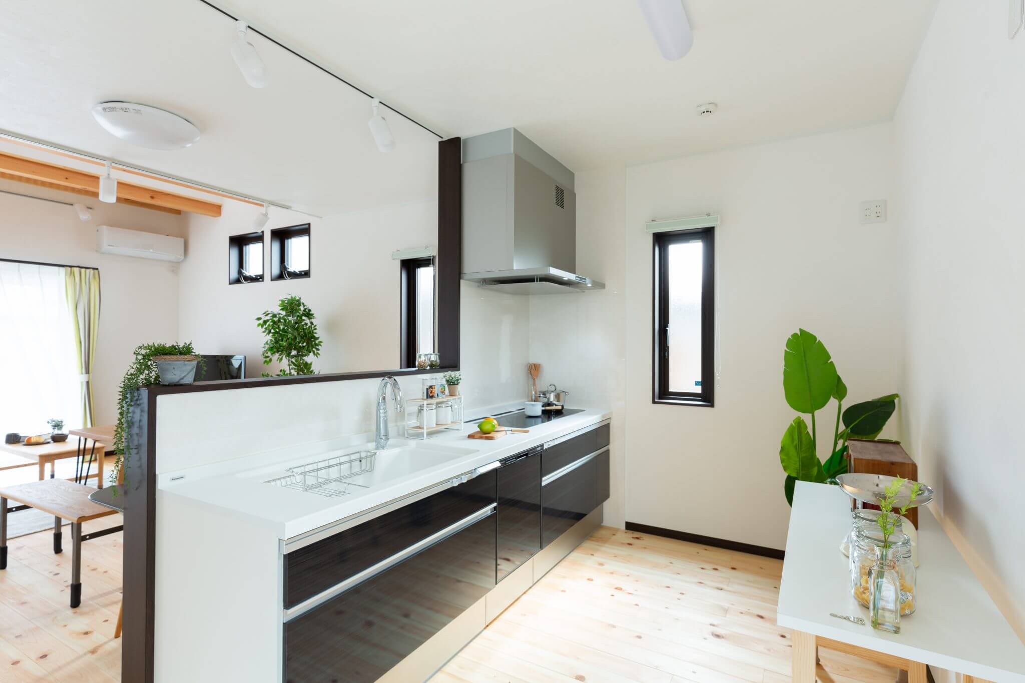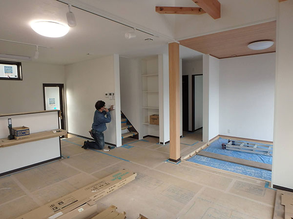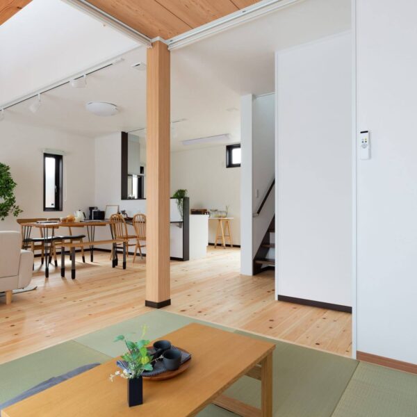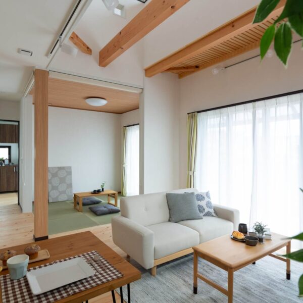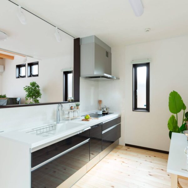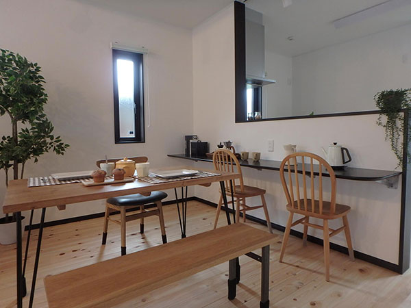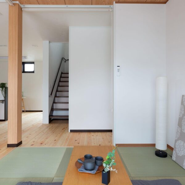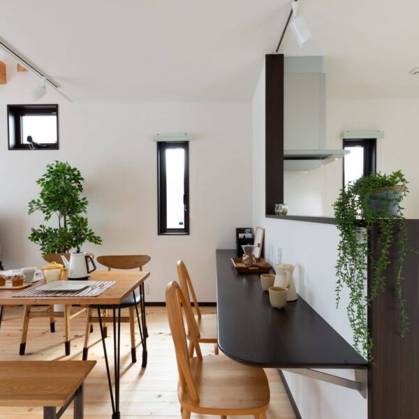 | 仕 様 | UA値:0.5 Q値:1.48 C値:0.5 外壁:窯業系サイディング 壁:珪藻土 床:無垢材(ヒノキ・パイン) 水回り製品:Panasonic |