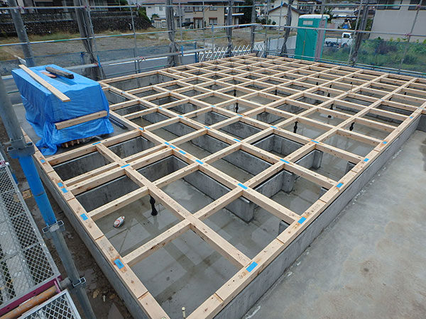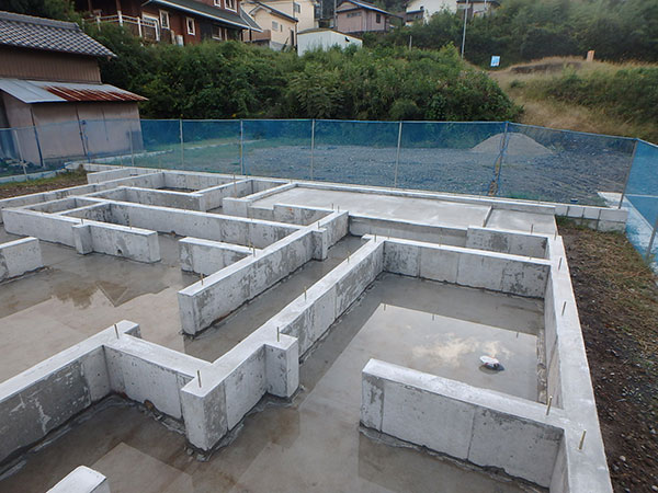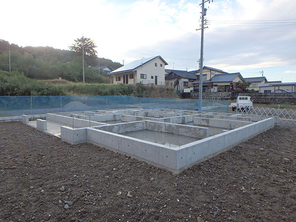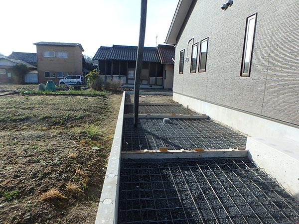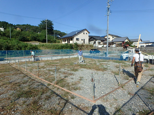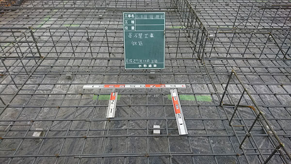 基礎の鉄筋工事です。適正に鉄筋が入っているか確認します。