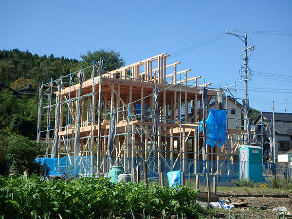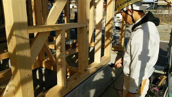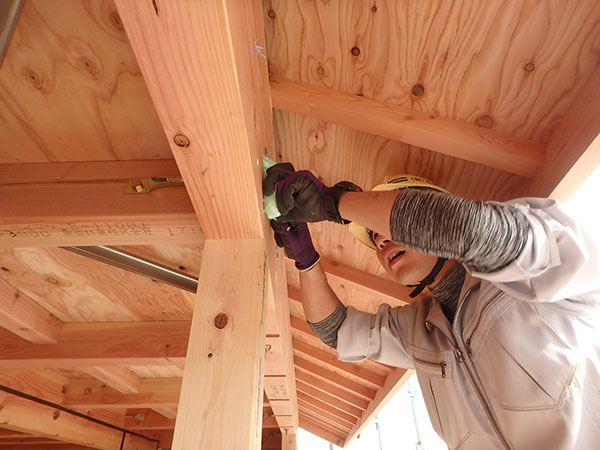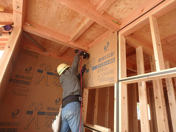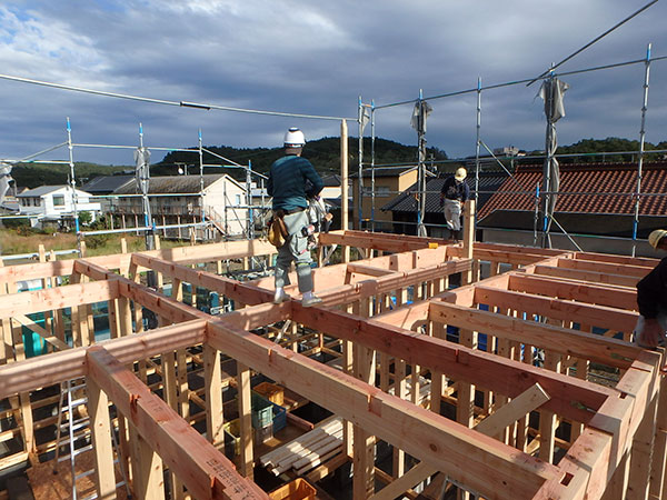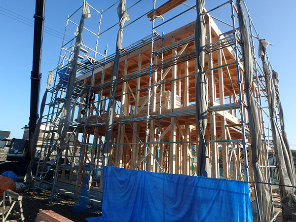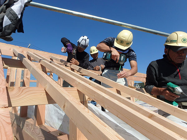 梁・屋根など住宅の骨組みをくみ上げていきます
