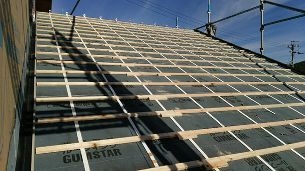 ルーフスペーサー(通気層を確保する部材)を取り付けています