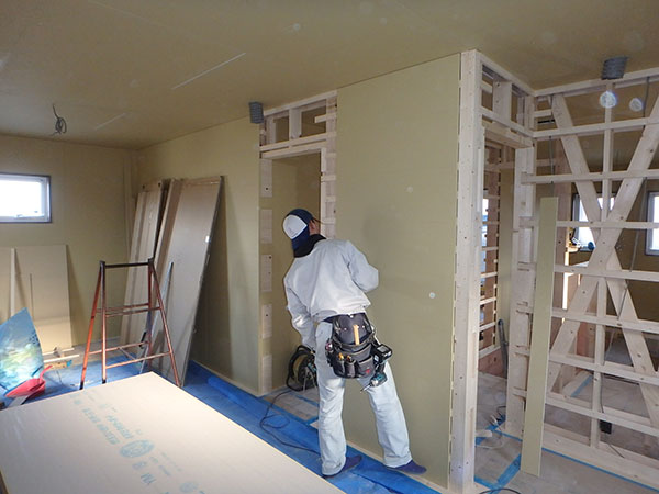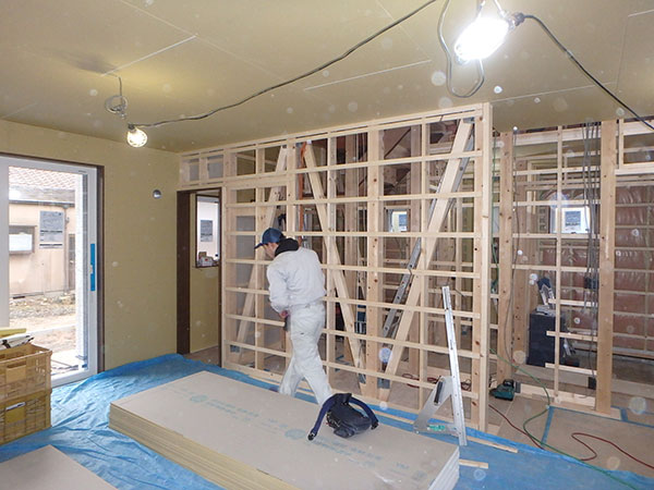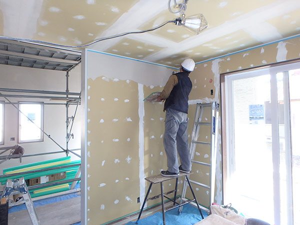 壁はすべて珪藻土です。珪藻土には調湿効果や消臭効果があります。下地処理状況です。