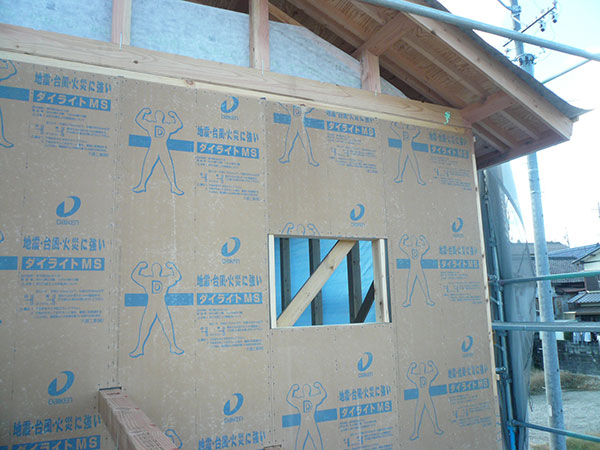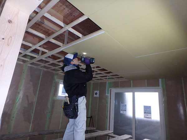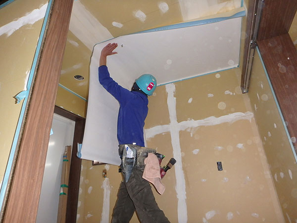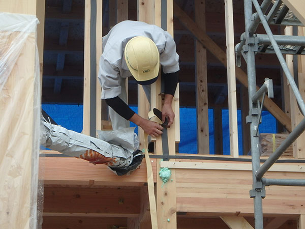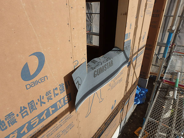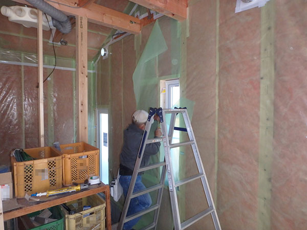 PEパッキン(耐震ボードの継ぎ目の所から空気が逃げないようにする役目)の取付です