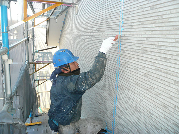 サイディングの間に雨水が入らないようにコーキング(防水材)をしています