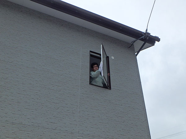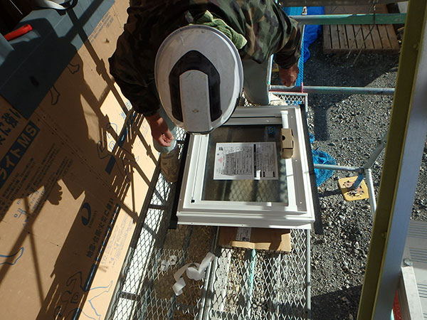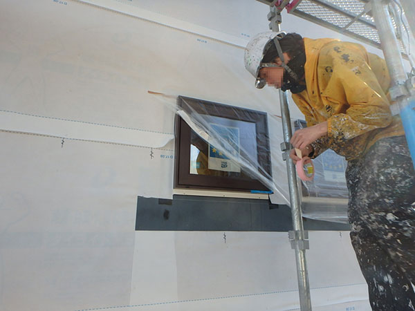 窓用リーチ(サッシから空気が漏れるのを防ぐ部材)を貼り付けます