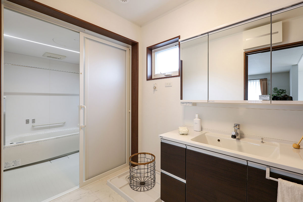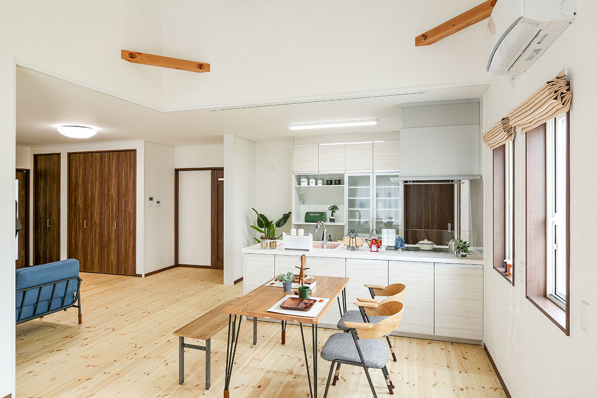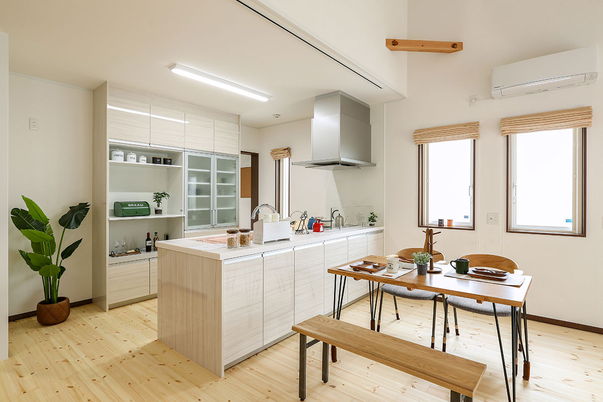 | 仕 様 | UA値:0.51 Q値:1.49 C値:0.7 耐震等級3 長期優良住宅 太陽光:6.25KW 外壁:窯業系サイディング 壁:珪藻土 床:無垢材 水回り製品:Panasonic |