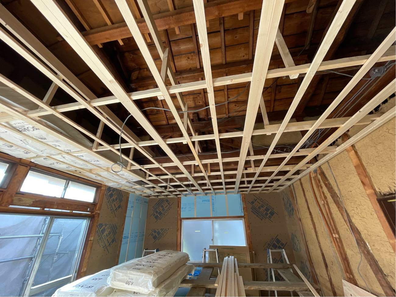 水平面の応力に対応するために、火打ち梁を増設しました。