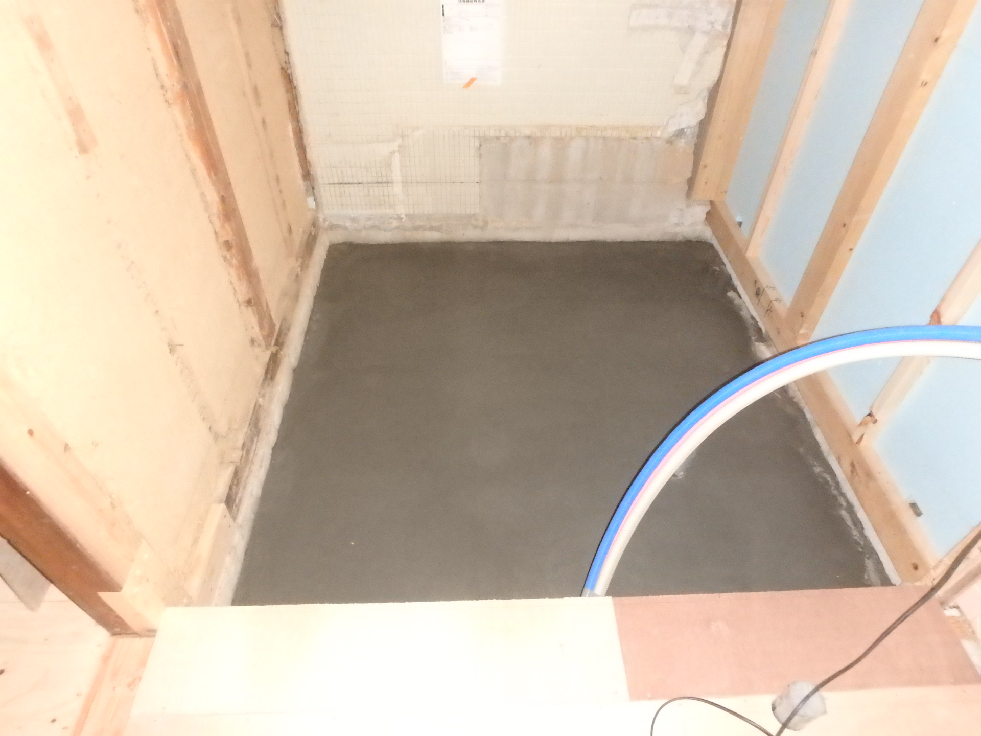 既存の浴室を解体して、土間コンクリートを打設して、ユニットバスを施工します。