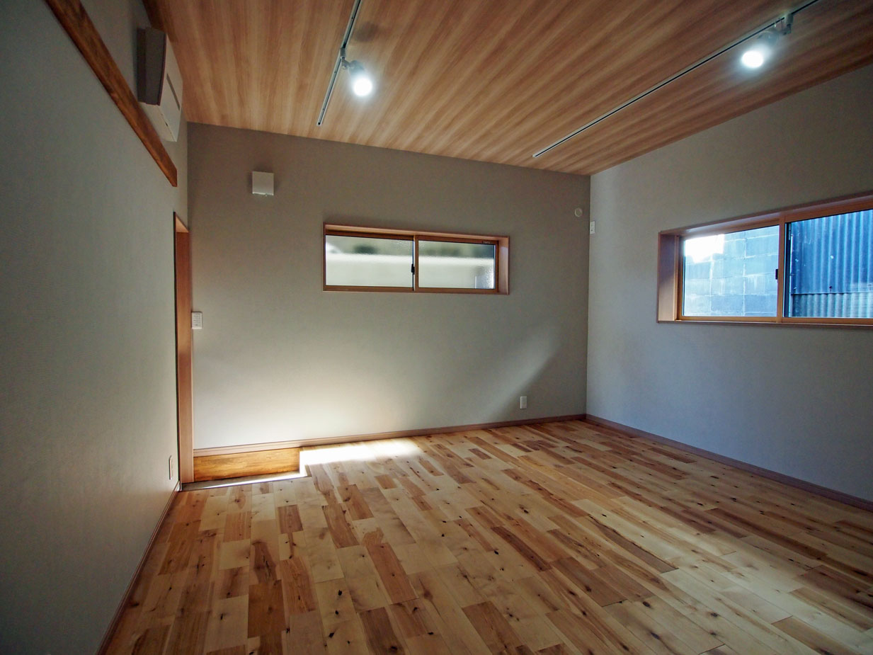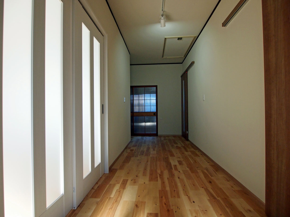 | 仕 様 | 外壁::ガルバリウム鋼板 サッシ:アルミ樹脂複合サッシ(エピソードNEO) 天井・壁:クロス 床:無垢材(桜) 水回り製品:Panasonic及びTOTO 1階部分を耐震改修・断熱改修します。 |