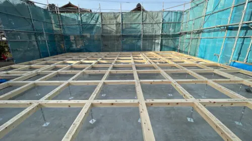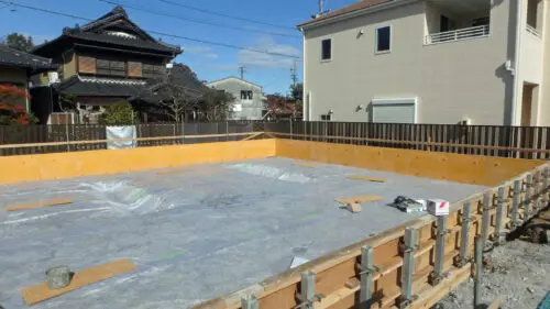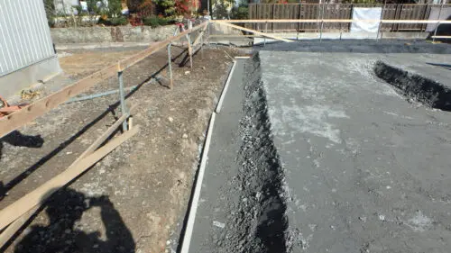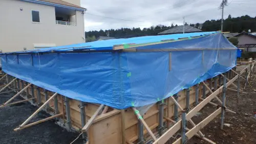 耐圧版コンクリート打設後と基礎工事の養生