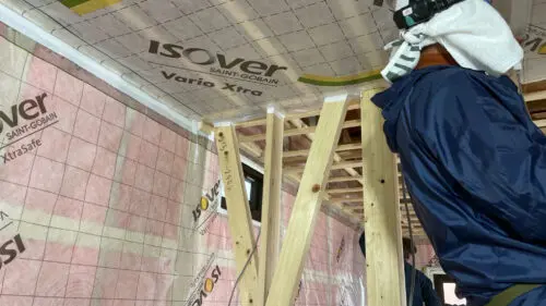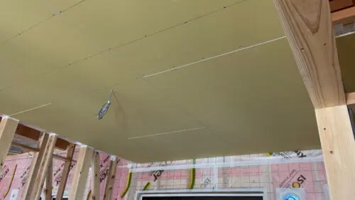 天井の下地を作成して、気密シートを取付けてプラスターボードを張ります