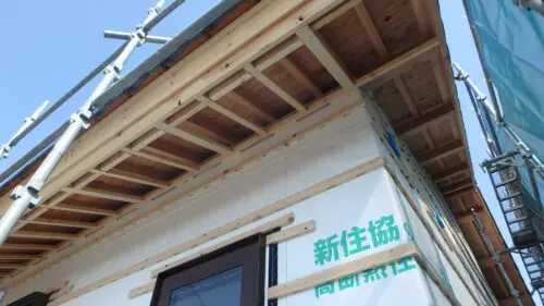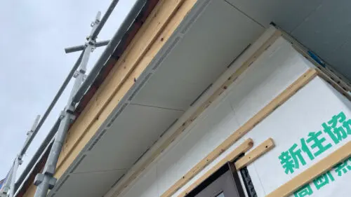 軒天井の下地です。ケイカル板を張って、塗装工事をします
