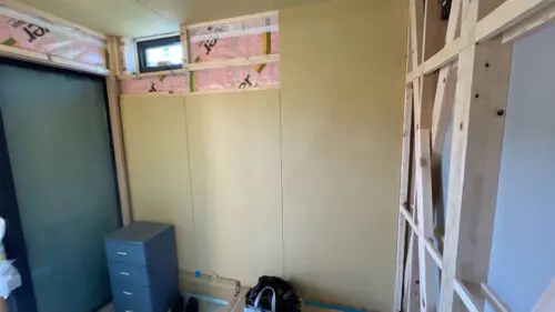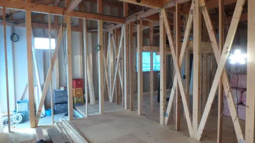間仕切り壁、内壁にプラスターボードを張ってます