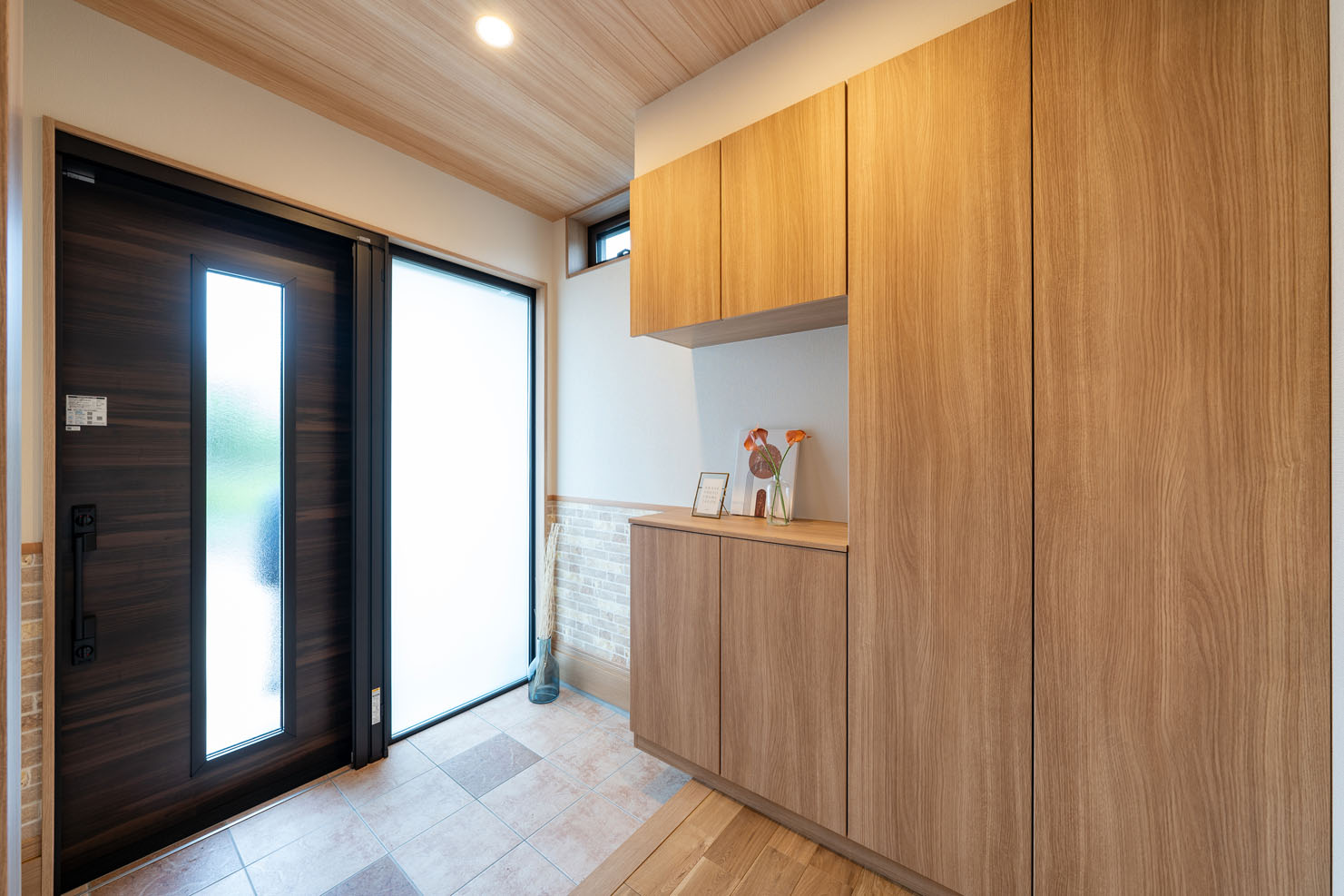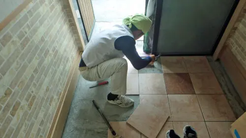 玄関タイル張りと基礎の外周周りモルタル塗り