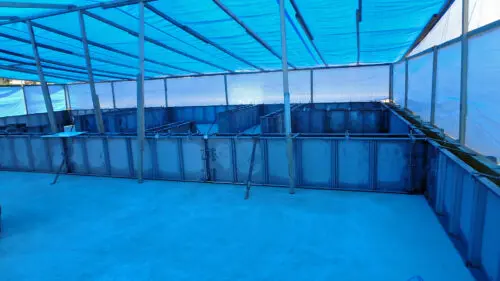 コンクリートが濡れないようにシートで養生をしました