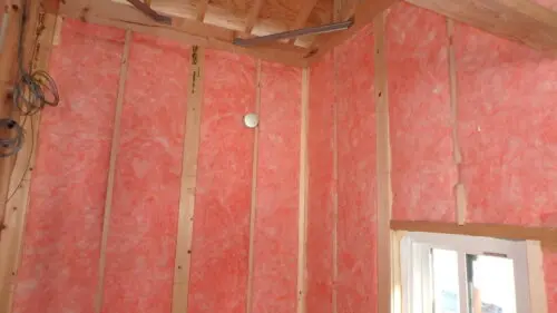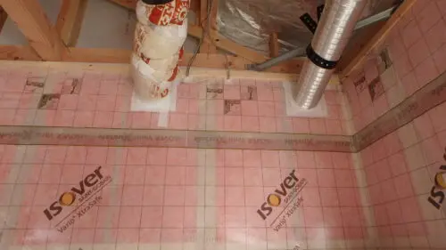 袋に入ってないグラスウール16K断熱材を敷きこんで、調湿シートを張ります。