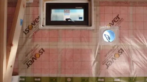 1枚目は樹脂サッシ廻りと24時間計画換気の気密処理の写真です。