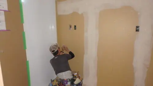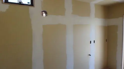 クロス貼り前の下地工事です。(パテ処理)