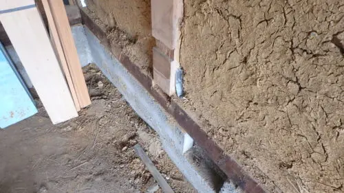 柱が曲がっていますので、ドーブチに下地をしながら取付けていきまうす。
