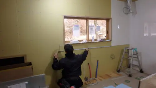 防水シートを張って、ガルバリウム鋼板下地の木材を取付けます