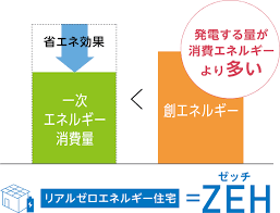 ZEHとは、住まいの断熱性・省エネ性能を上げること、そして太陽光発電などでエネルギーを創ることにより、年間の一次消費エネルギー量(空調・給湯・照明・換気)の収支をプラスマイナス「ゼロ」にする住宅を指します。